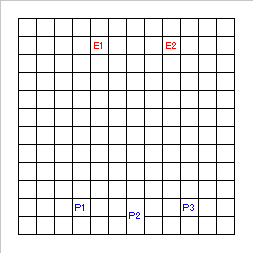 E1:クールーク艦A 移動4/射程3/耐久5/火・風/部下60
